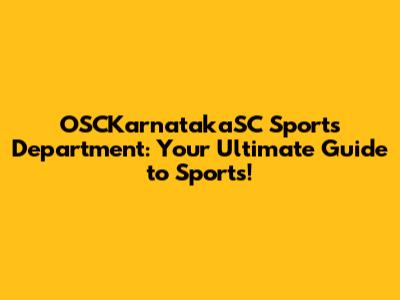 OSCKarnatakaSC Sports Department: Your Guide To Sports!