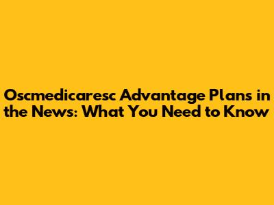Oscmedicaresc Advantage Plans: What's Making Headlines?
