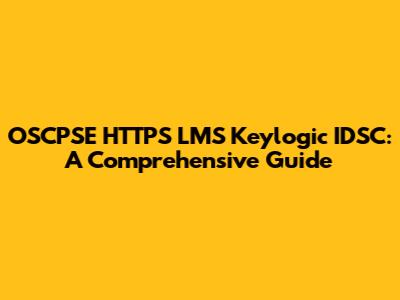 OSCPSE, HTTPS, LMS, Keylogic IDSC: A Comprehensive Guide