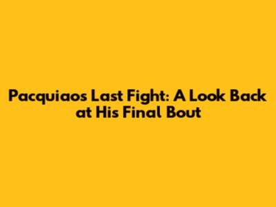 Manny Pacquiao's last fight is significant not just because it was his final bout, but also because it represents the culmination of an extraordinary career. Pacquiao's journey from poverty to becoming one of the greatest boxers of all time is an inspirational story. His speed, power, and relentless aggression in the ring made him a fan favorite around the world. Beyond his boxing skills, Pacquiao's humility and philanthropy have earned him respect and admiration. He has used his platform to advocate for social justice and to help those in need. Pacquiao's impact extends beyond the sport of boxing, making him a role model for millions. His legacy as a fighter, a public servant, and a humanitarian will endure for years to come. Pacquiao's story is a testament to the power of hard work, perseverance, and a commitment to making a difference in the world. His final fight serves as a reminder of his incredible achievements and the lasting impact he has had on the sport of boxing and beyond. Pacquiao's legacy will continue to inspire future generations to pursue their dreams and to use their talents to make a positive impact on the world.