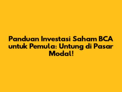Panduan Investasi Saham BCA Untuk Pemula: Untung Di Pasar Modal!