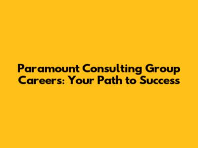 Paramount Consulting Group Careers: Your Path To Success