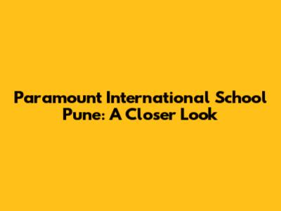 Paramount International School Pune: A Closer Look
