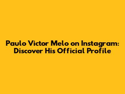 Paulo Victor Melo On Instagram: Discover His Official Profile