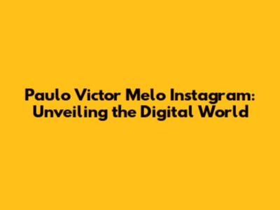 Paulo Victor Melo: Your Instagram Guide