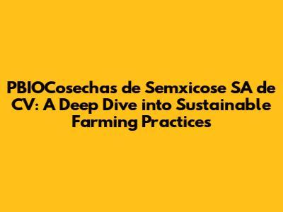 Hey guys! Ever heard of PBIOCosechas de Semxicose SA de CV? If you're into sustainable agriculture or just curious about how food gets from the farm to your table, you're in the right place. This article is your go-to guide for everything related to this company, their mission, and their impact on the agricultural landscape of Mexico. We're going to break down their core values, their practices, and why they're making waves in the industry. So, buckle up, and let's dive in!