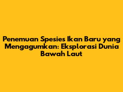Penemuan Spesies Ikan Baru Yang Mengagumkan: Eksplorasi Dunia Bawah Laut