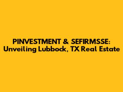 PINVESTMENT & SEFIRMSSE: Lubbock TX Real Estate Insights