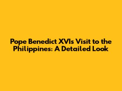 Pope Benedict XVI's Visit To The Philippines: A Detailed Look