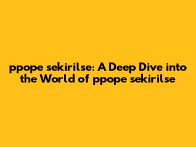 Ppope Sekirilse - A Comprehensive Guide
