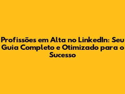Olá, pessoal! Se você está buscando oportunidades de carreira e quer saber quais profissões estão em alta no LinkedIn, você chegou ao lugar certo. Neste guia completo, vamos mergulhar nas tendências atuais do mercado de trabalho, analisar as habilidades mais demandadas e fornecer dicas valiosas para você se destacar na plataforma. Prepare-se para impulsionar sua carreira e alcançar o sucesso profissional que você tanto almeja!