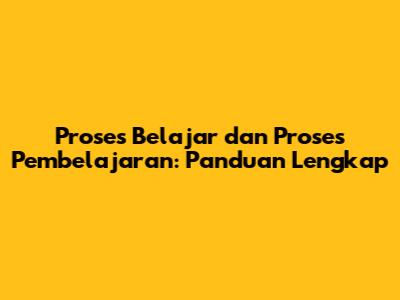 Proses Belajar Dan Pembelajaran Yang Efektif: Panduan Lengkap
