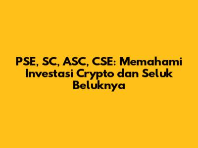Investasi crypto telah menjadi topik hangat dalam beberapa tahun terakhir, menarik minat banyak orang dari berbagai kalangan. Namun, di tengah gemuruh popularitas ini, seringkali muncul pertanyaan mendasar: Apa sebenarnya PSE, SC, ASC, dan CSE itu dalam konteks investasi crypto? Artikel ini akan mengupas tuntas istilah-istilah tersebut, memberikan panduan komprehensif bagi Anda yang ingin berinvestasi crypto dengan cerdas dan terinformasi.