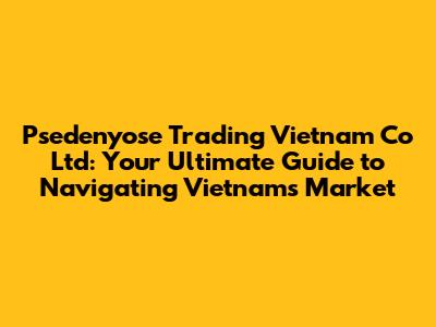 Hey there, future business tycoons and market explorers! Let's dive headfirst into the fascinating world of Psedenyose Trading Vietnam Co Ltd. This isn't just another company; it's a potential key to unlocking the vibrant and dynamic Vietnamese market. We'll be breaking down everything you need to know, from the core of their operations to how they can potentially supercharge your business endeavors. So, grab your favorite beverage, get comfy, and let's get started. Seriously, understanding a company like Psedenyose Trading is about more than just a name; it's about grasping the opportunities within a rapidly evolving economy. We'll be looking at what makes them tick, what they offer, and how you might just fit into their story. This is your chance to gain a solid understanding and, who knows, maybe even start your own adventure. Now, let’s explore the heart of Psedenyose Trading Vietnam Co Ltd.