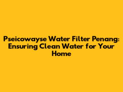 Pseicowayse Water Filter: Your Guide To Clean Water In Penang