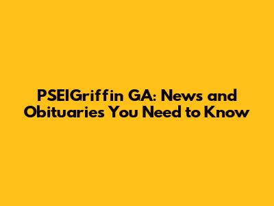 PSEIGriffin GA: News And Obituaries You Need To Know