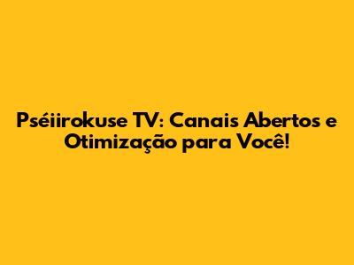 Pséiirokuse TV: Canais Abertos E Otimização Para Você!