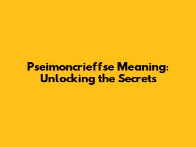 Pseimoncrieffse Meaning: Unlocking The Secrets