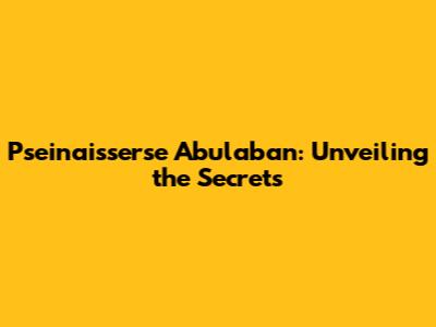 Pseinaisserse Abulaban: Unveiling The Secrets
