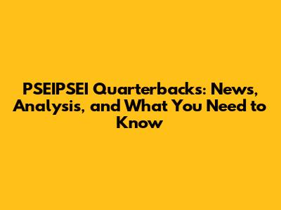 PSEIPSEI Quarterbacks: News, Analysis, And What You Need To Know