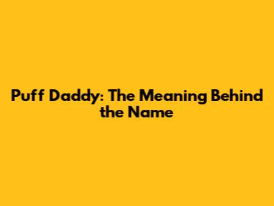 Puff Daddy: The Meaning Behind The Name