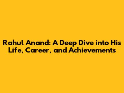Rahul Anand: Biography, Career, And Achievements