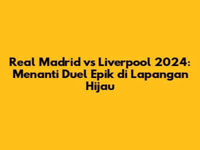 Pertandingan antara Real Madrid dan Liverpool selalu menjadi tontonan yang menarik dan penuh dengan kejutan. Jangan lewatkan kesempatan untuk menyaksikan pertandingan seru ini, ya! Siapkan diri kalian untuk merasakan euforia sepak bola yang sesungguhnya. Jangan lupa untuk terus update informasi terbaru dari berbagai sumber terpercaya, dan pantau terus perkembangan kedua tim.