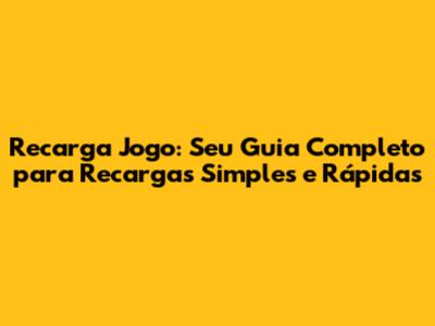Recarga Jogo: Guia Completo E Fácil Para Suas Recargas