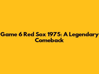 Red Sox 1975 World Series Game 6: A Legendary Comeback