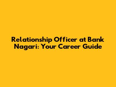 Relationship Officer At Bank Nagari: Your Career Guide