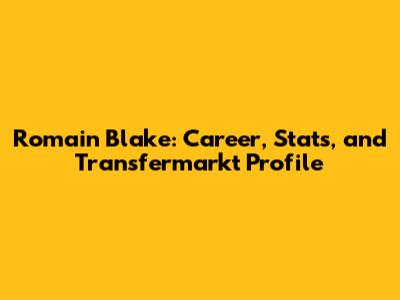 Romain Blake: Career, Stats, And Transfermarkt Profile