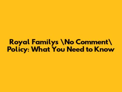Royal Family's No Comment Policy: What You Need To Know