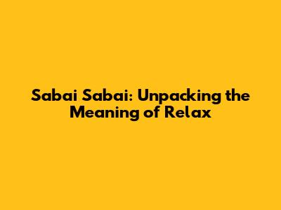 Sabai Sabai: Unpacking The Meaning Of 'Relax'