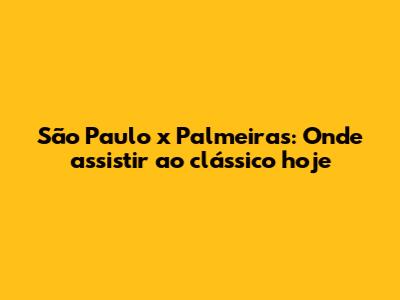 São Paulo X Palmeiras: Onde Assistir Ao Clássico Hoje