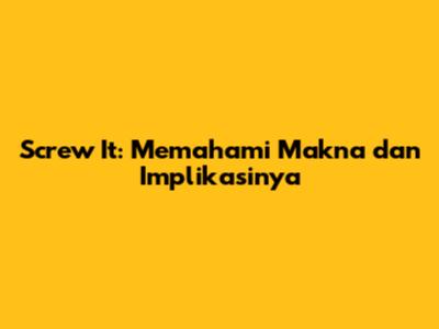 "Screw it" adalah frasa yang kuat dengan berbagai makna dan implikasi. Dari asal-usulnya sebagai bahasa slang hingga dampaknya terhadap perilaku dan psikologi, frasa ini menawarkan wawasan menarik tentang cara kita berkomunikasi dan berinteraksi dengan dunia. Dengan memahami konteks, dampak, dan cara penggunaannya yang efektif, kita dapat menggunakan "screw it" sebagai alat untuk mengurangi stres, meningkatkan keberanian, dan menghadapi tantangan hidup dengan lebih baik. Ingatlah, meskipun frasa ini bisa sangat berguna, penting untuk menggunakannya dengan bijak dan bertanggung jawab. Jadi, lain kali Anda merasa ragu atau frustasi, pertimbangkan "screw it"—tetapi pastikan Anda melakukannya dengan cara yang akan mengarah pada hasil yang positif.