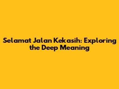 Selamat Jalan Kekasih: Exploring The Deep Meaning
