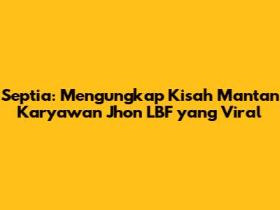 Kisah Septia, mantan karyawan Jhon LBF, adalah cerminan dari perjalanan hidup yang penuh tantangan, pembelajaran, dan inspirasi. Dari awal kariernya hingga pengalamannya bekerja dengan Jhon LBF, Septia telah menunjukkan ketekunan, semangat, dan kemampuan untuk beradaptasi. Kisahnya yang viral memberikan banyak pelajaran berharga bagi kita semua.