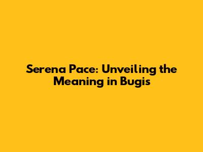 Serena Pace: Unveiling The Meaning In Bugis