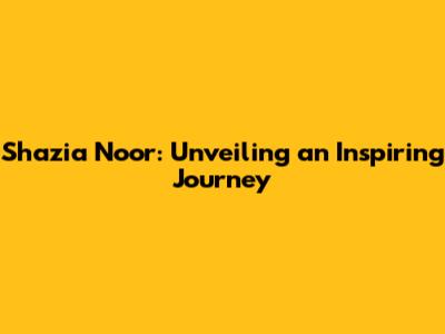 Shazia Noor: Unveiling An Inspiring Journey