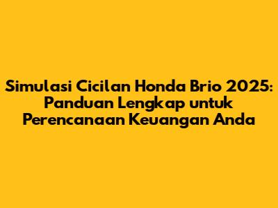 Dengan memahami simulasi cicilan mobil Brio 2025 secara mendalam, Anda dapat merencanakan keuangan dengan lebih baik, memilih penawaran terbaik, dan meraih impian memiliki mobil impian Anda. Ingatlah untuk selalu melakukan perencanaan keuangan yang matang, membandingkan penawaran, dan membayar cicilan tepat waktu. Dengan perencanaan yang tepat, memiliki mobil Brio 2025 akan menjadi kenyataan yang membahagiakan, bukan beban finansial.
