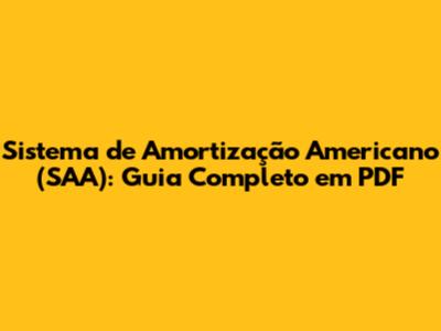 Sistema De Amortização Americano (SAA): Guia Completo Em PDF