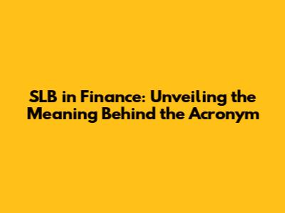 SLB In Finance: Unveiling The Meaning Behind The Acronym