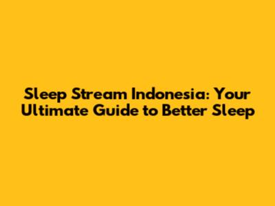 Sleep Stream Indonesia: Your Ultimate Guide To Better Sleep