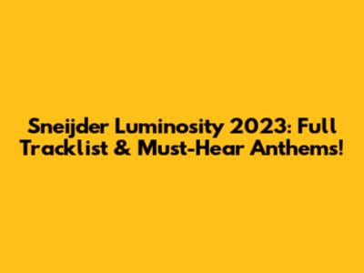 Sneijder Luminosity 2023: Full Tracklist & Must-Hear Anthems!