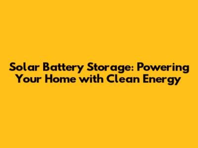 Solar Battery Storage: Powering Your Home With Clean Energy