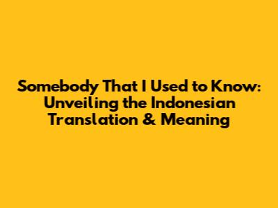 Somebody That I Used To Know: Indonesian Translation & Meaning