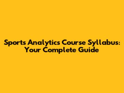 Sports Analytics Course: Your Syllabus Guide