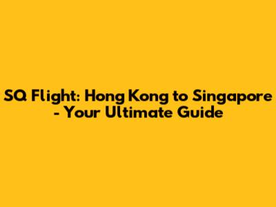 SQ Flight: Hong Kong To Singapore - Your Ultimate Guide