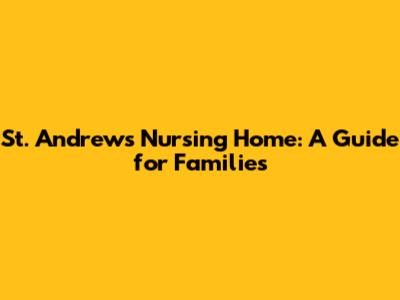 St. Andrews Nursing Home: A Guide For Families