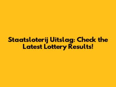 Stay Updated with the Latest Staatsloterij Uitslag